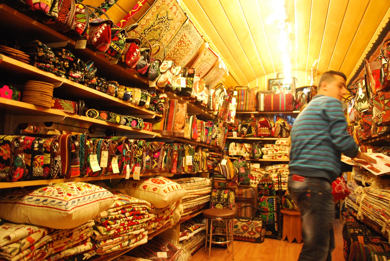 市場の中では、絨毯やキリム、スカーフ、ランプ、宝石、陶器、革製品など・・・。