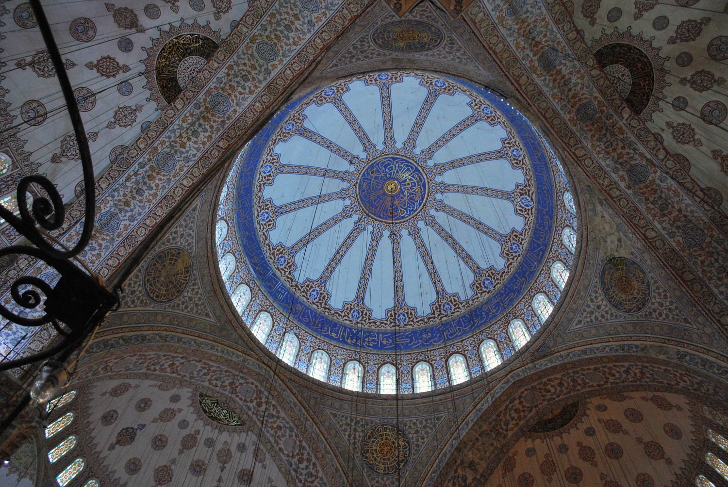 青いイズニックタイルで覆われたドームと、ステンドグラスからの美しい光・・・これがブルーモスクと呼ばれる由来だそう。